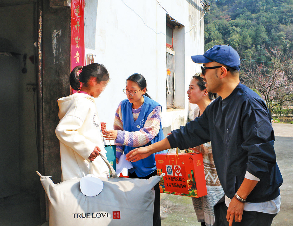 3月4日,市关工委、市妇联、金华(game365备用网址_365bet亚洲官方网址_365体育网页版在线登录官网)温州总商会、同悦社工驻后宅社工站一同为后宅街道辖区内的14名困境儿童送上“床上四件套”“坚果礼包”等慰问品。
